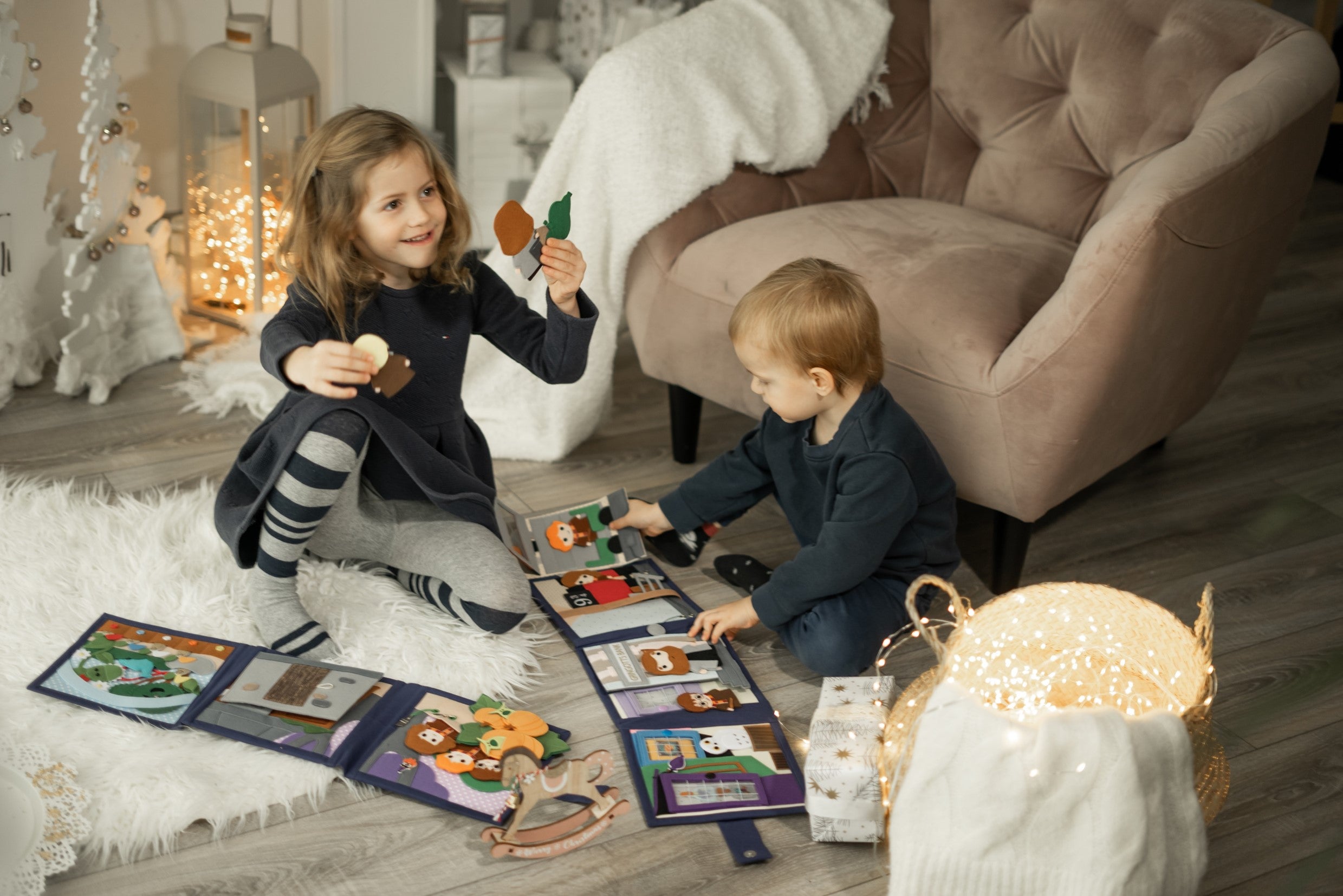 Unsere Quiet Books werden aus reiner Baumwolle und Filz liebevoll handgefertigt. Sie bestehen aus spannenden Seiten mit altersgerechten Aufgaben, die die Kinder zum Spielen einladen, ihre Neugier und Fantasie wecken sowie sie langfristig beschäftigen.