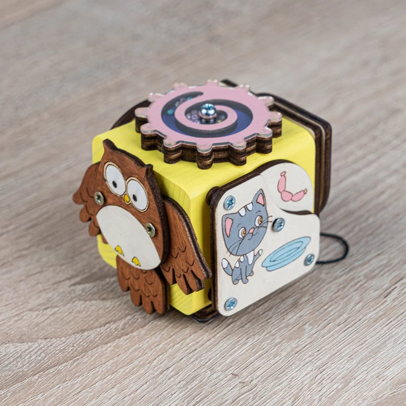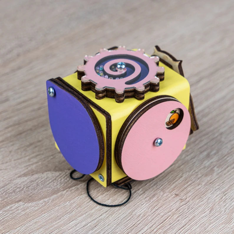 Our Busycube, also known as a motor skills cube, is a valuable educational toy for babies and toddlers.