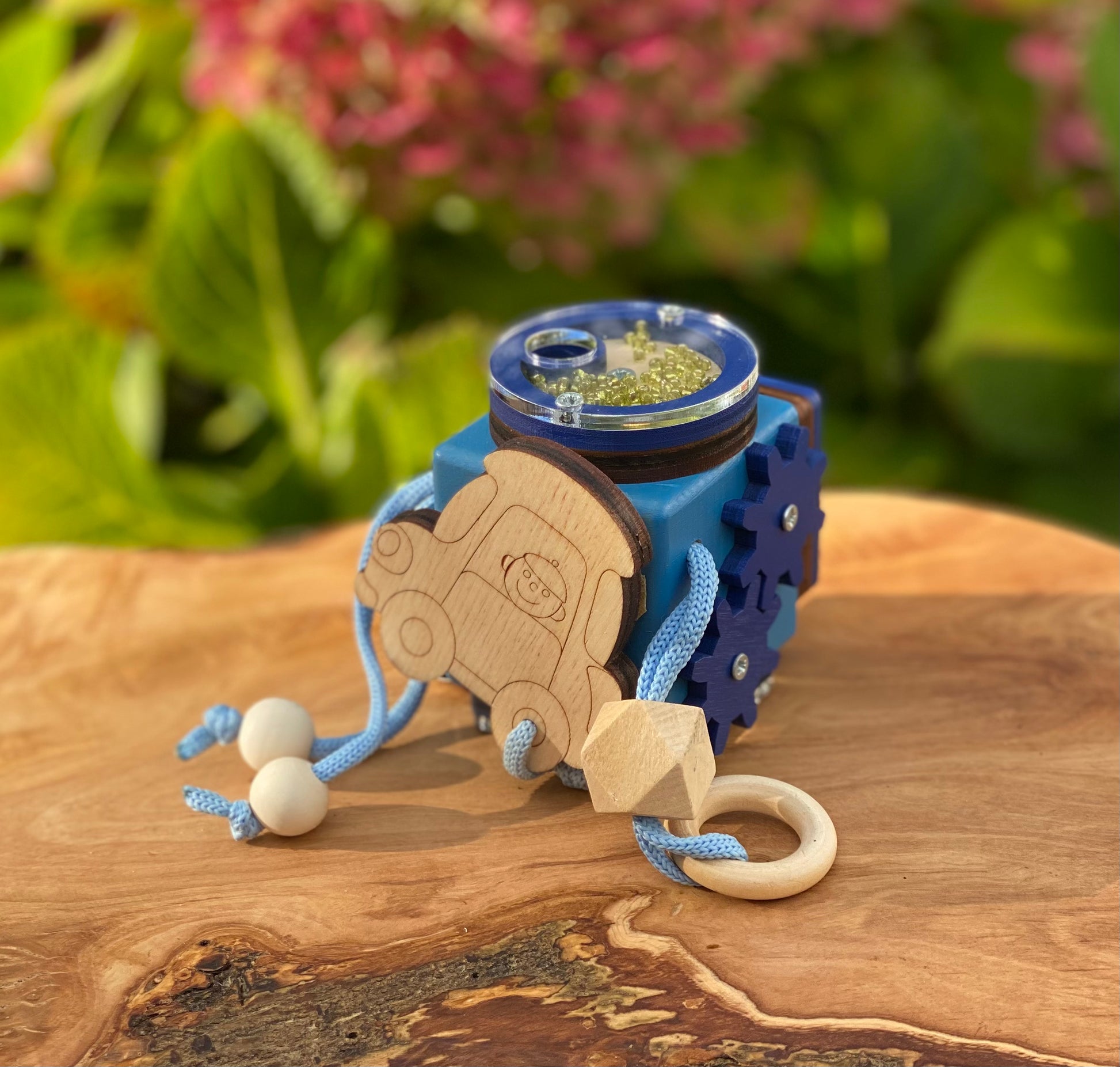Unser Busycube, auch als Motorikwürfel bekannt, ist ein pädagogisch-wertvolles Lernspielzeug für Babys und Kleinkinder.