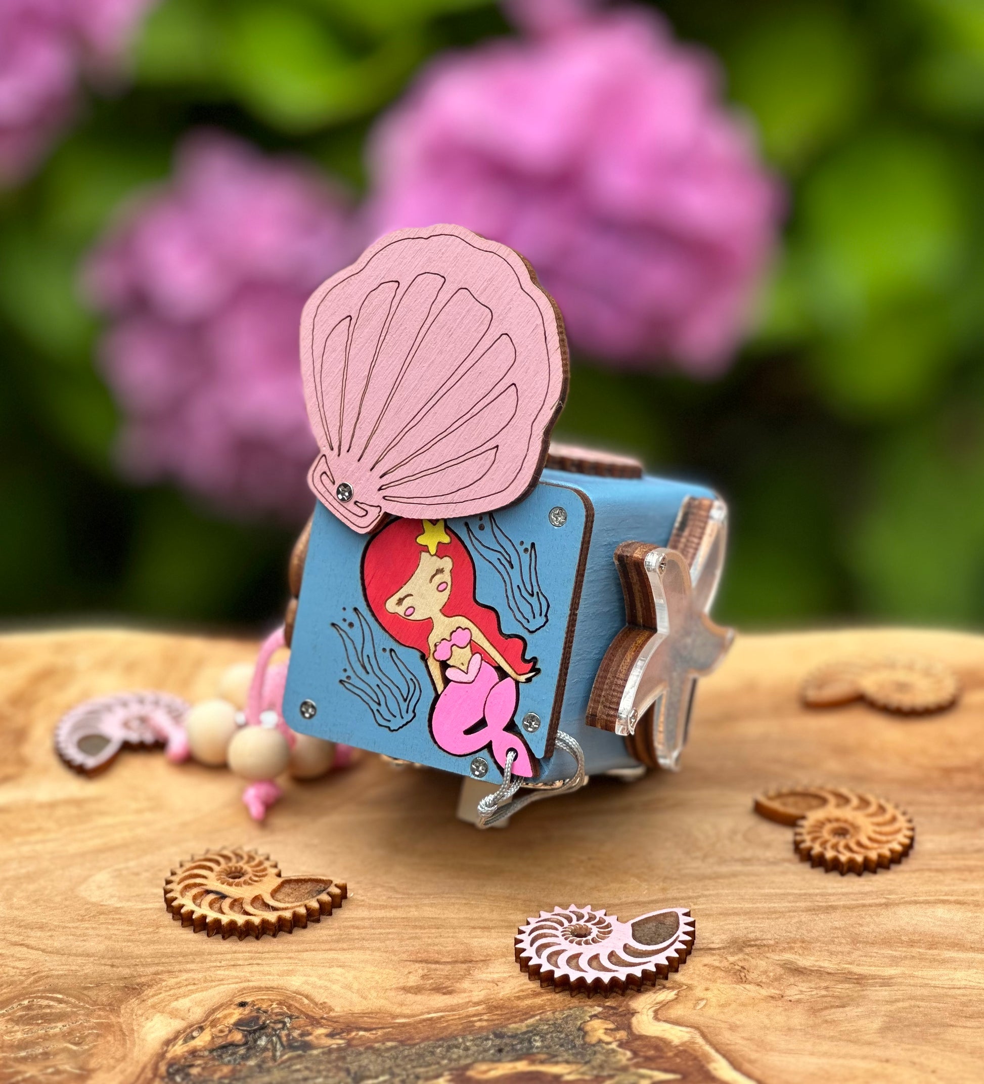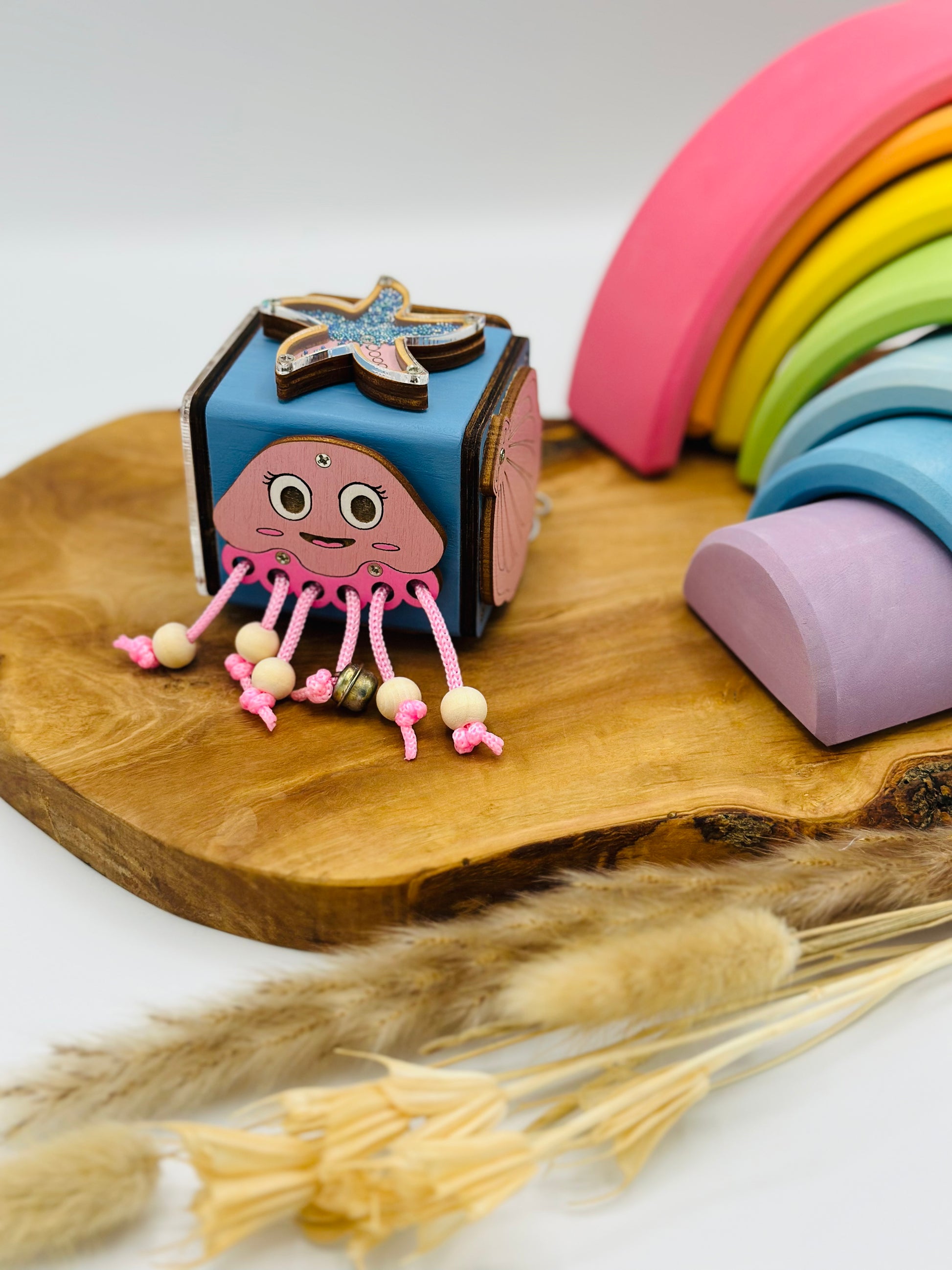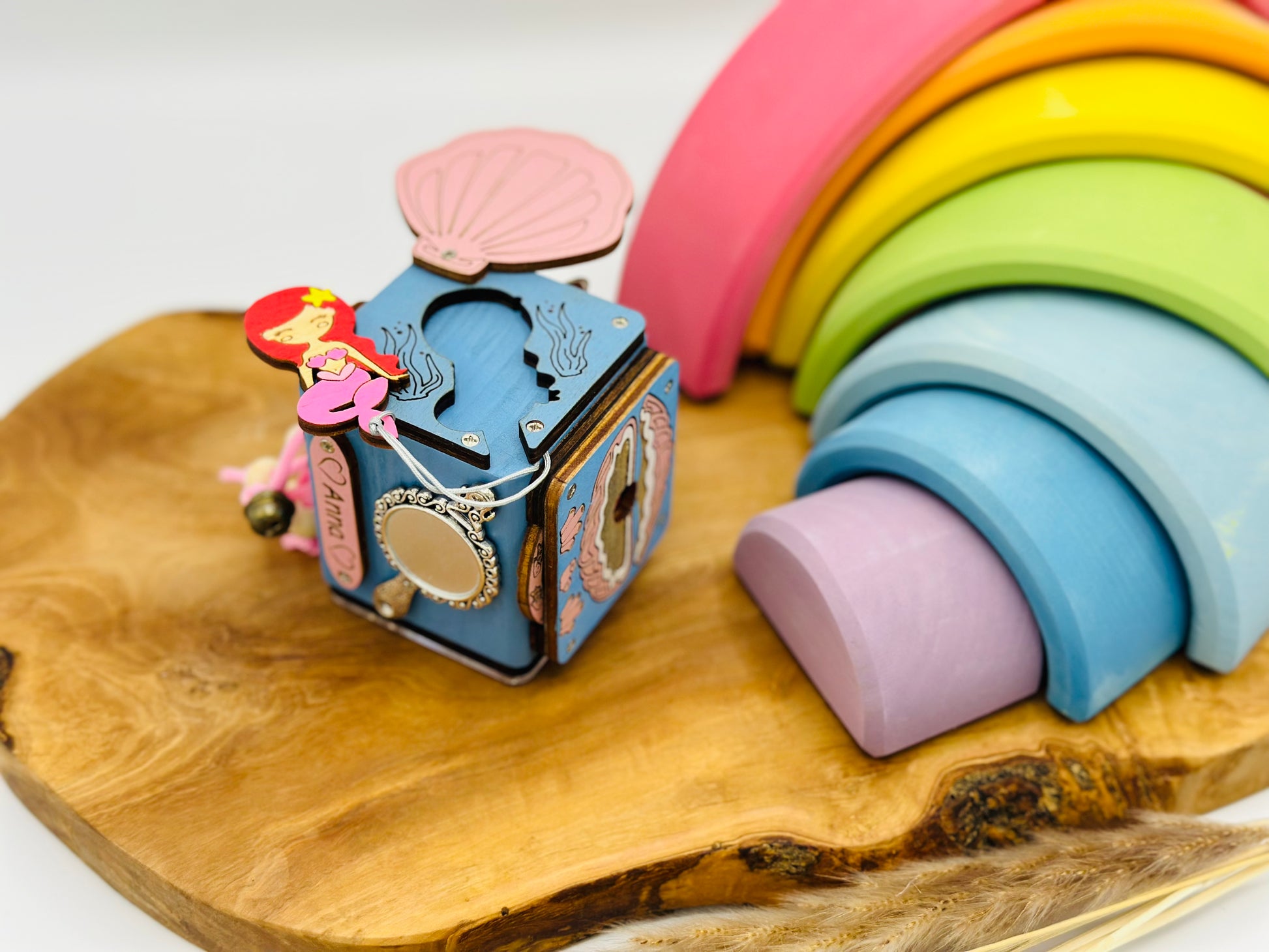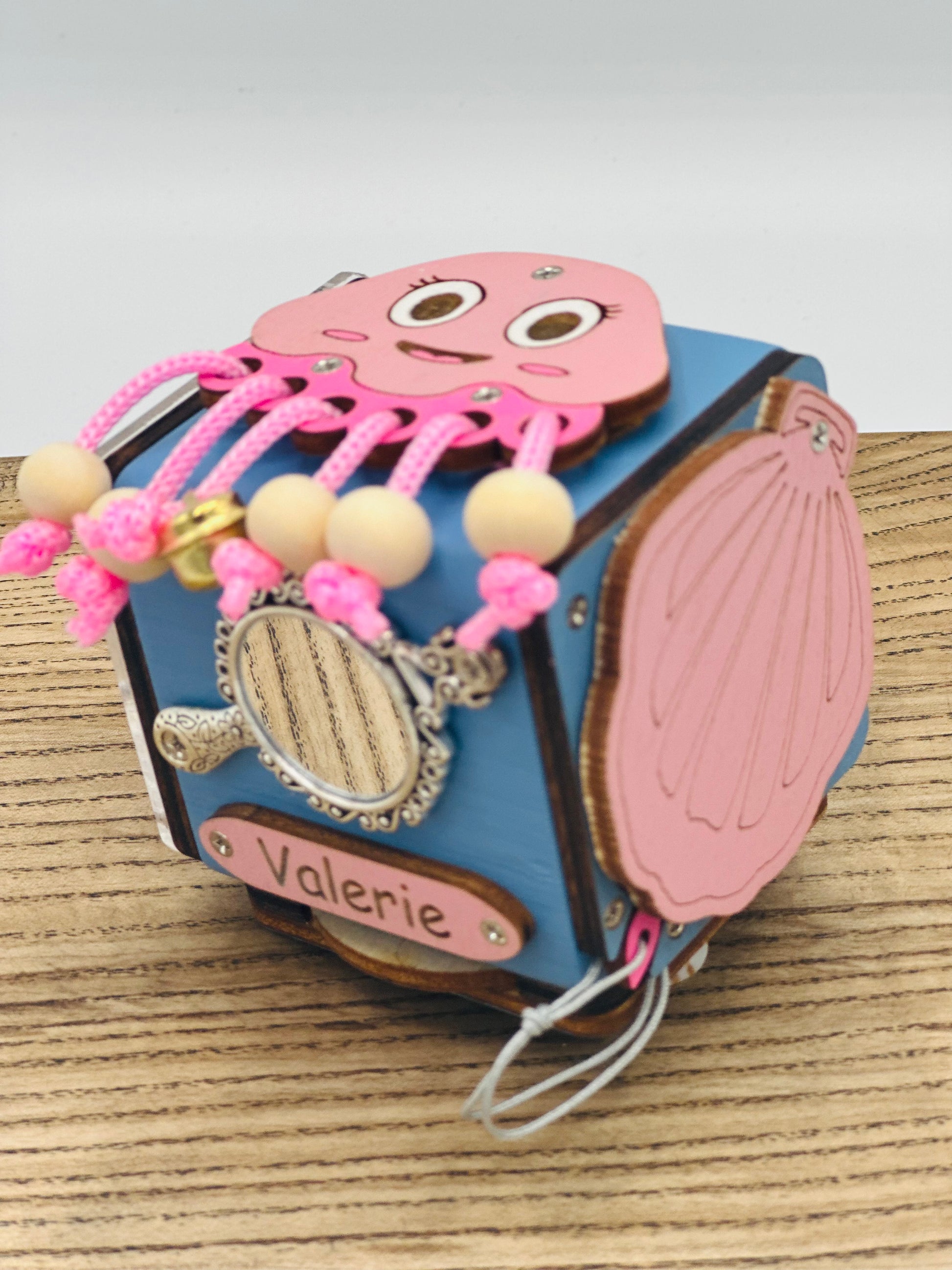 Unser Busycube, auch als Motorikwürfel bekannt, ist ein pädagogisch-wertvolles Lernspielzeug für Babys und Kleinkinder.
