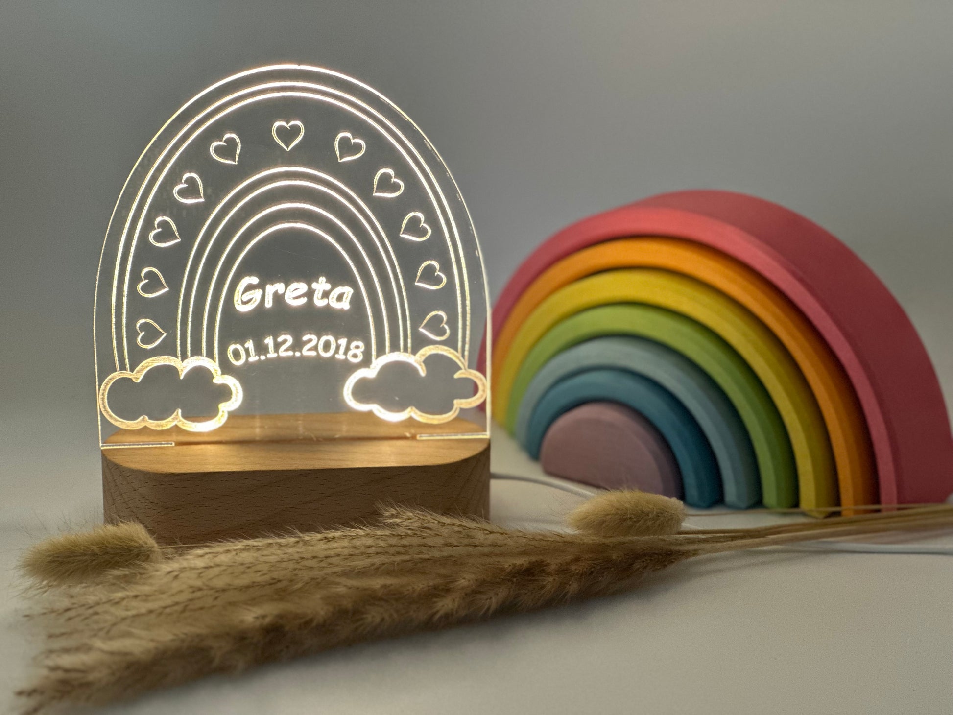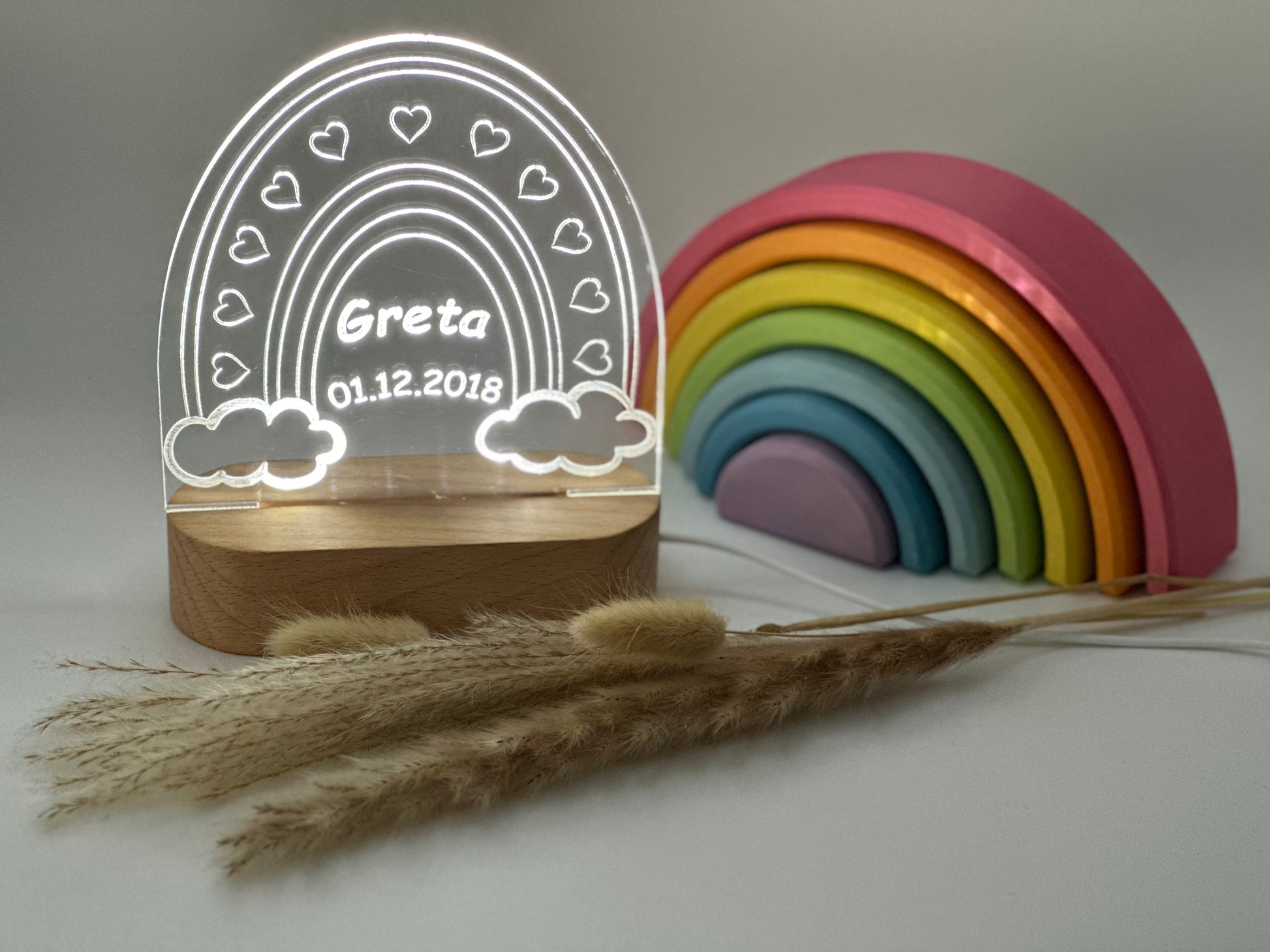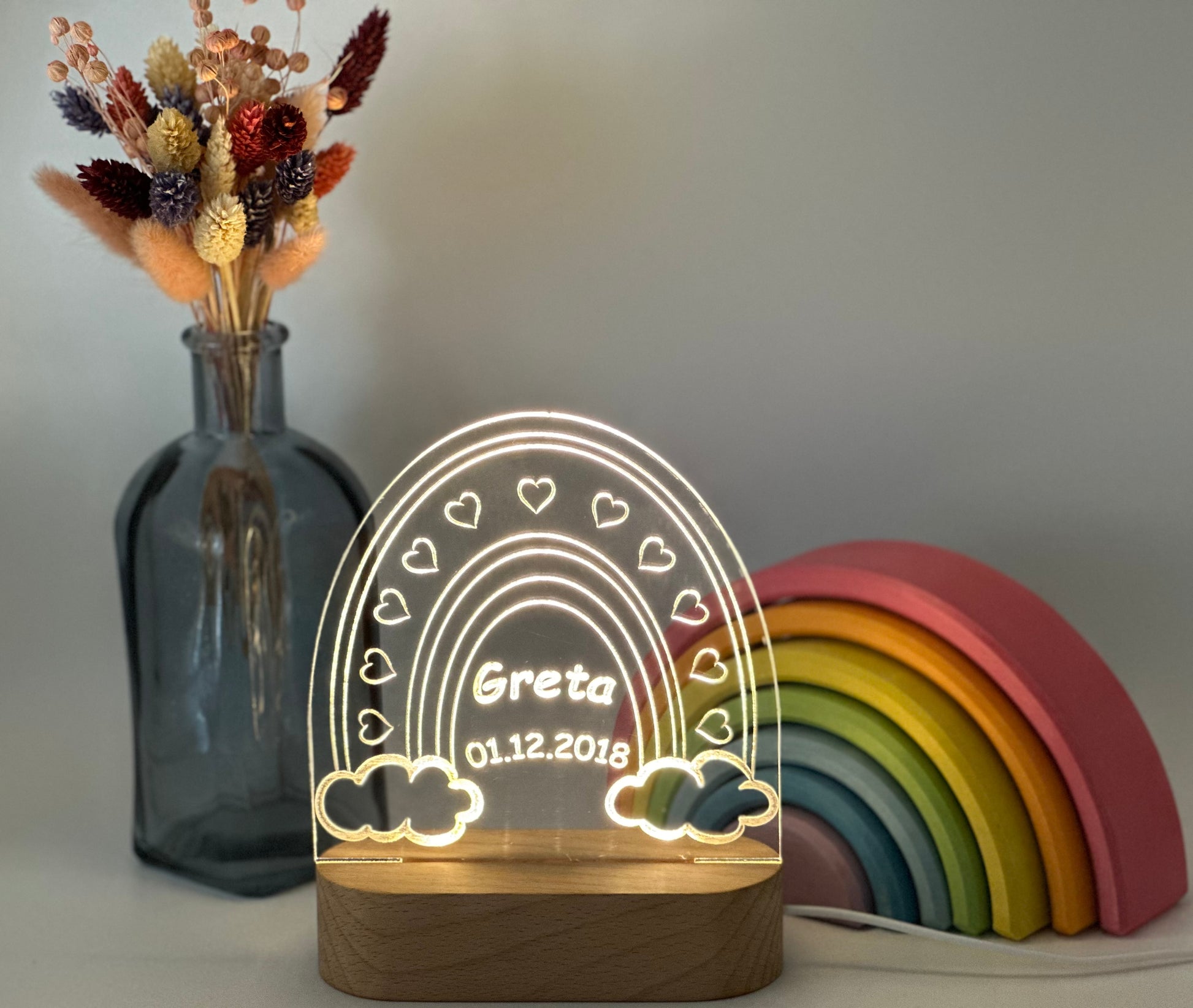 Die Lampe wird nach deiner Vorstellung personalisiert. Du entscheidest dabei, ob der Name und Geburtstag des Kindes, ein bedeutungsvoller Satz, oder ein liebevoller Gruß als eine elegante Gravur versehen werden soll. Genau das macht deine Lampe einzigartig und sie wird so zu einem besonderen Erinnerungsstück.