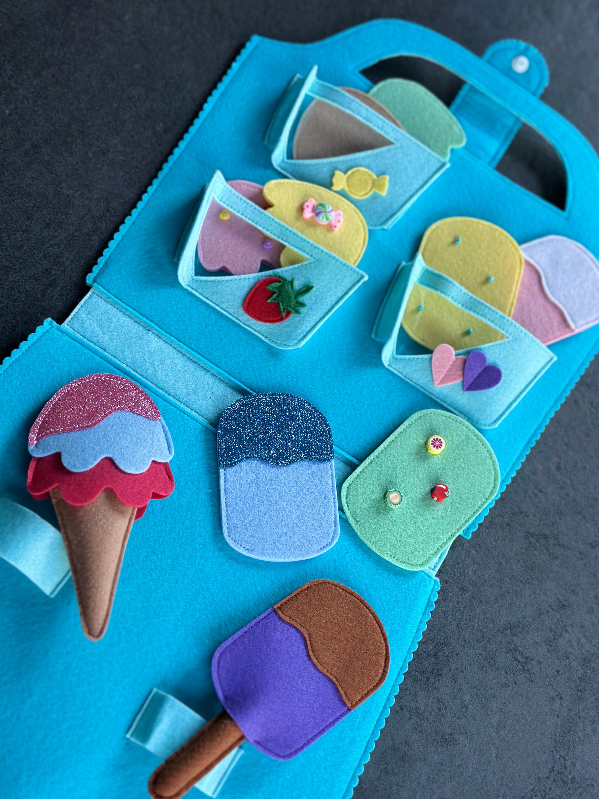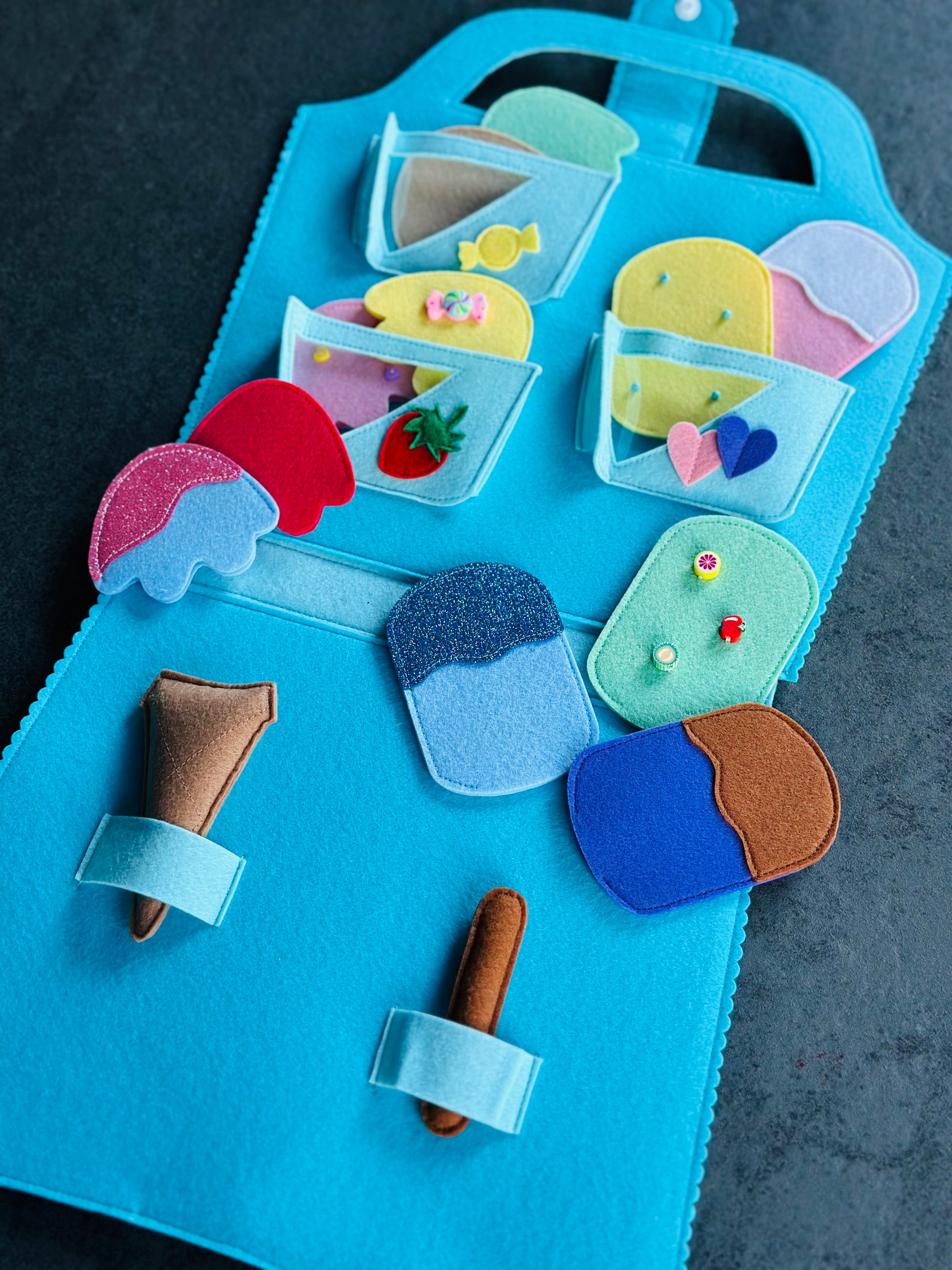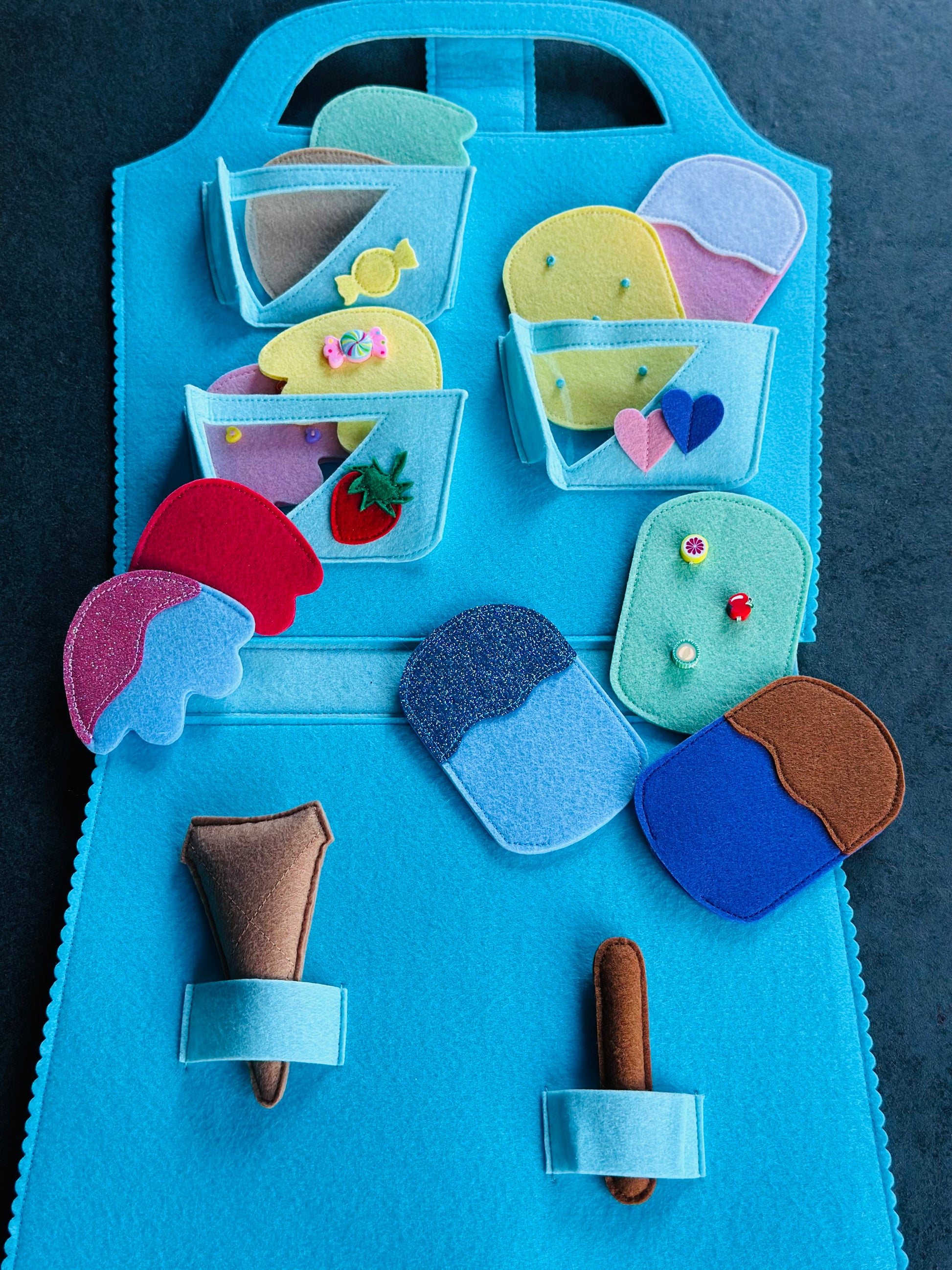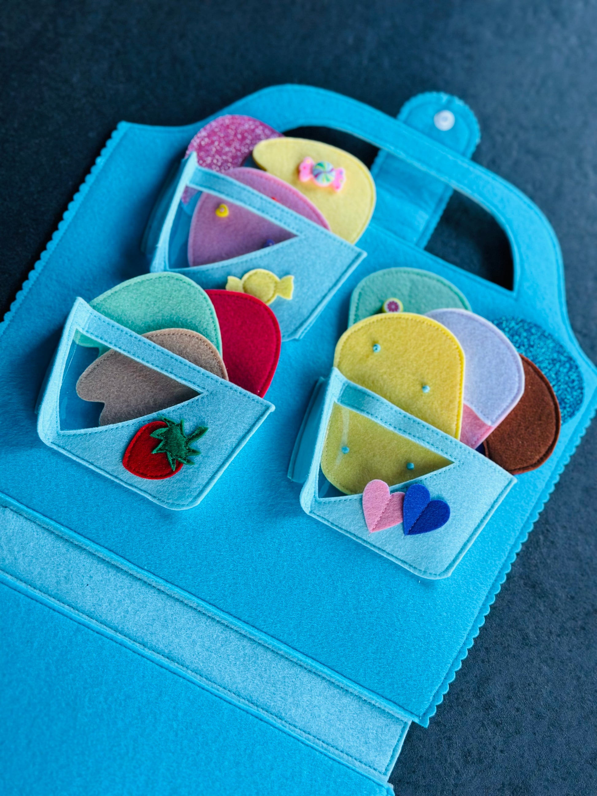 Schönes, pädagogisch wertvolles Lernspielzeug aus Filz mit vielen, abwechslungsreichen Möglichkeiten das Kind zu beschäftigen.