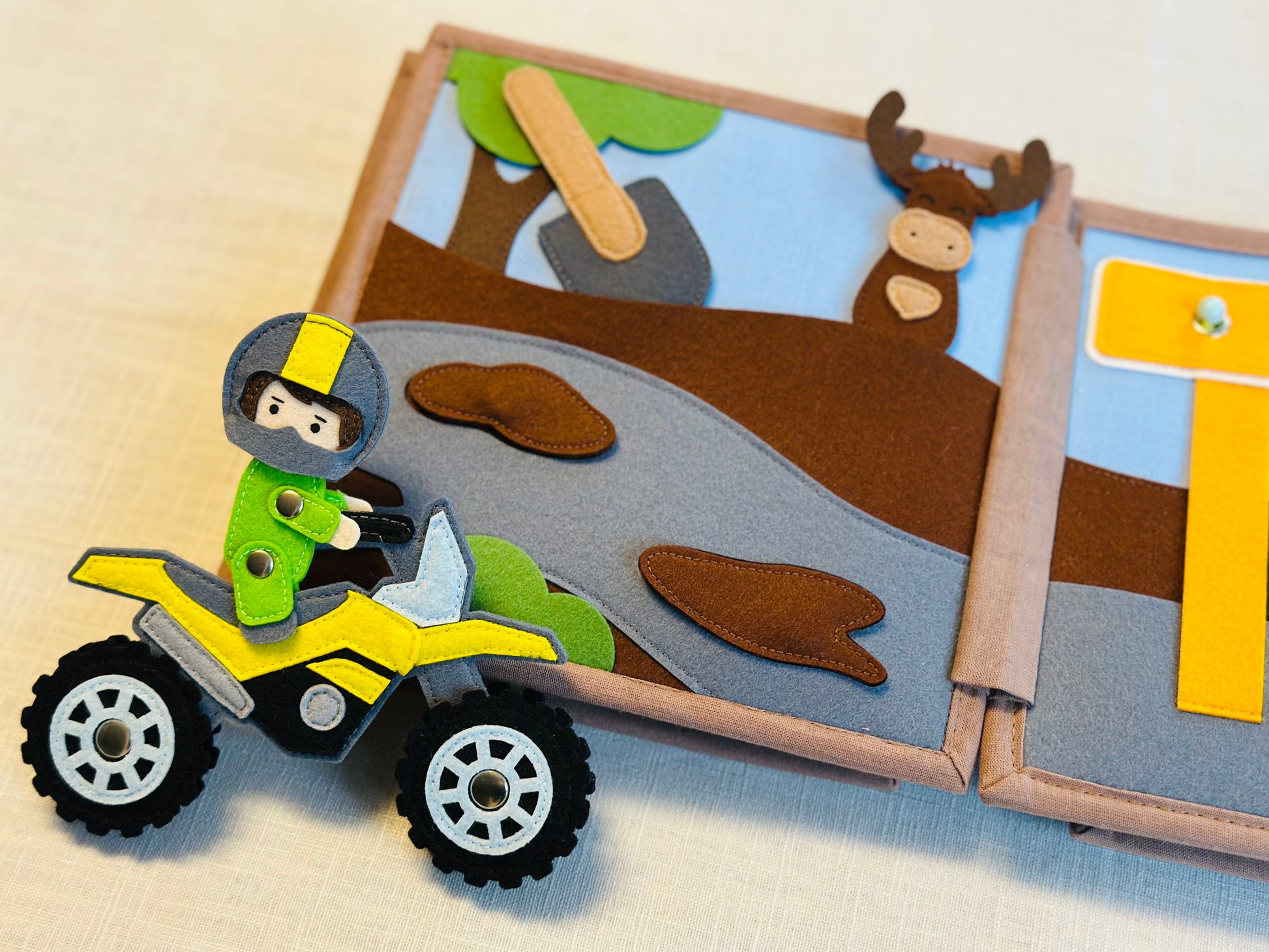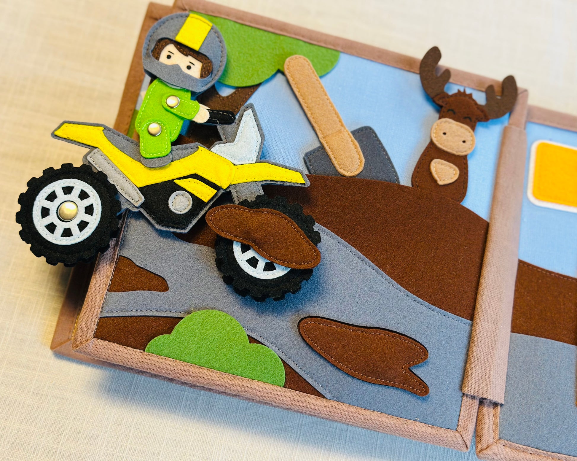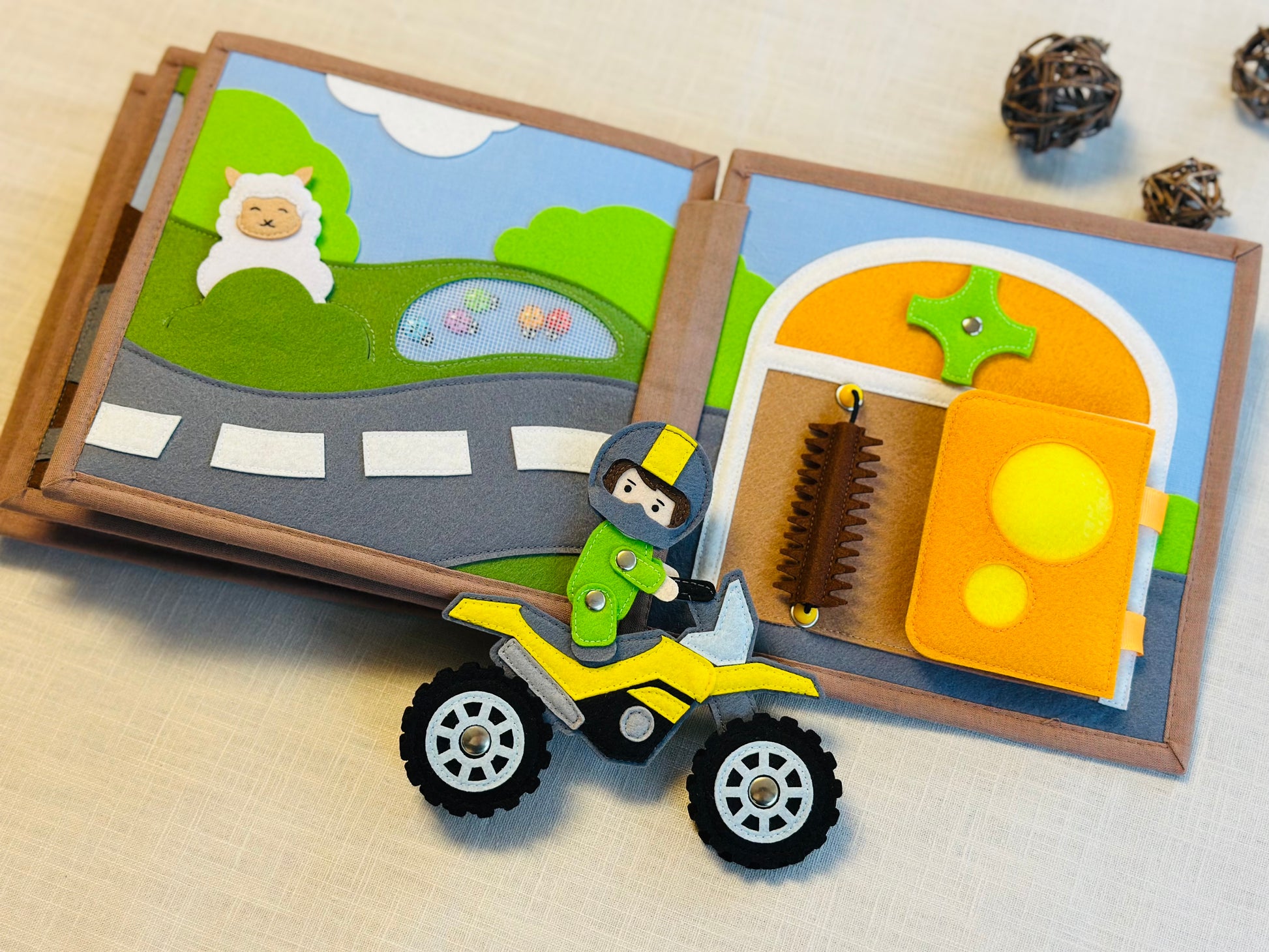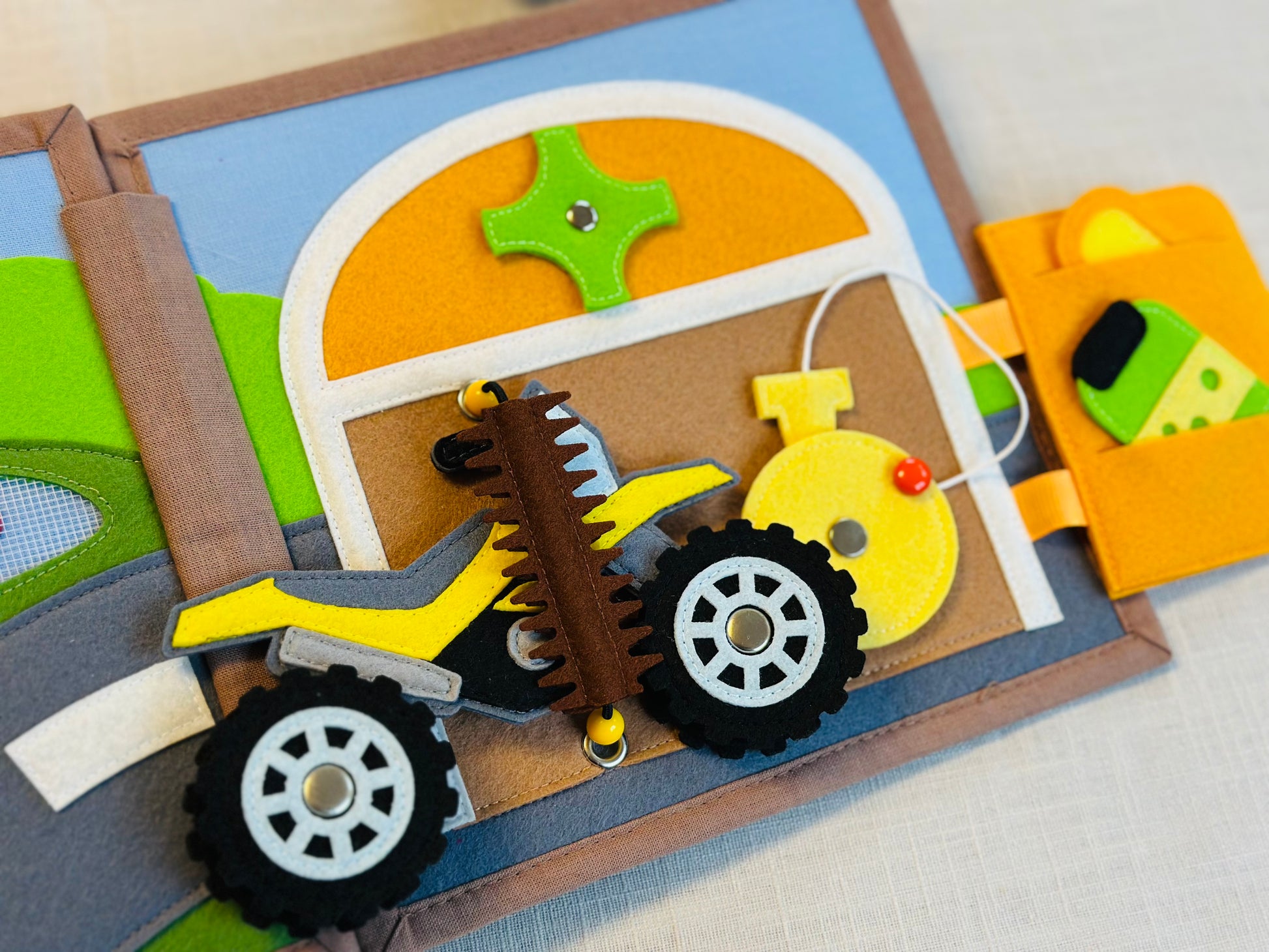 Das Quiet Book „Gute Fahrt!“ bietet zahlreiche Aktivitäten zur Förderung der kognitiven Fähigkeiten und der Kreativität.