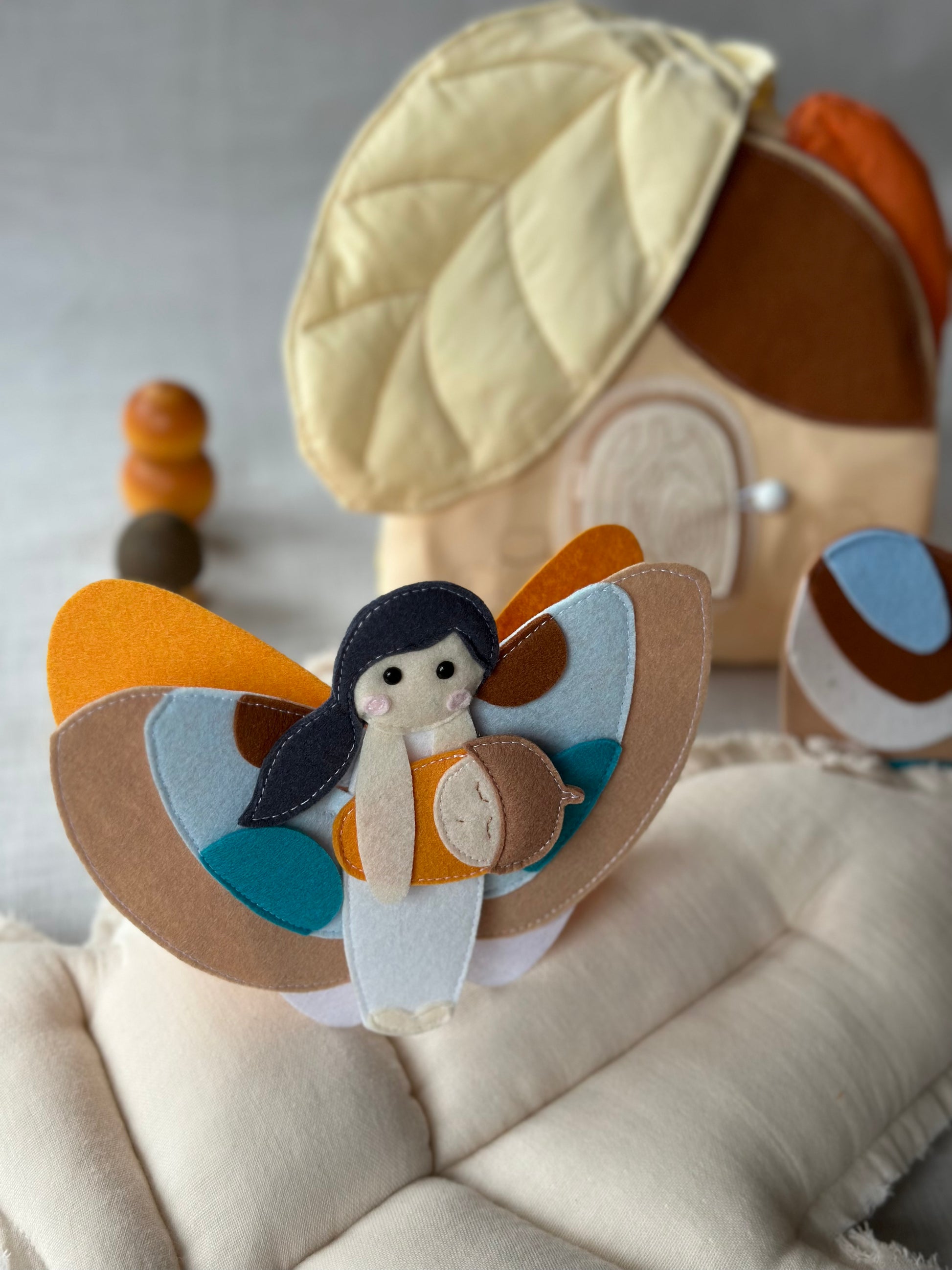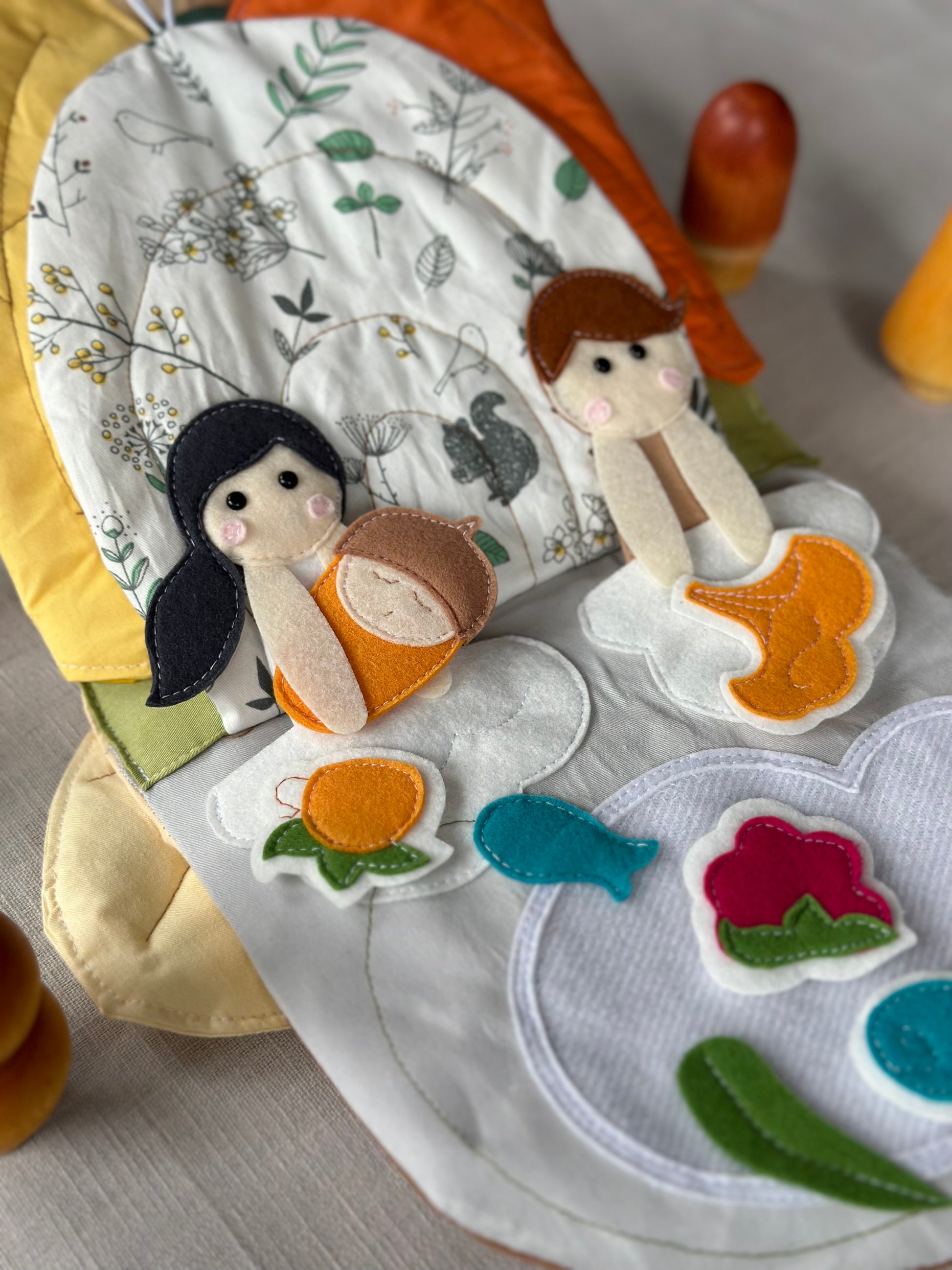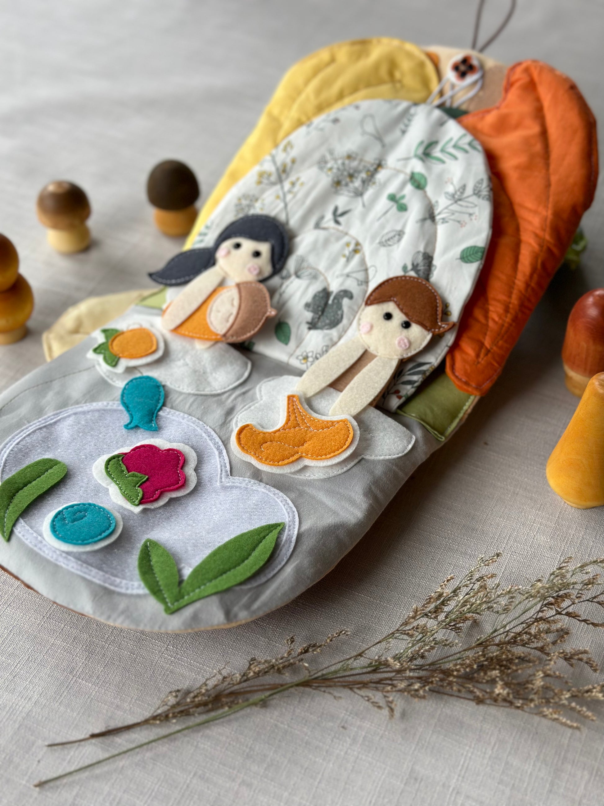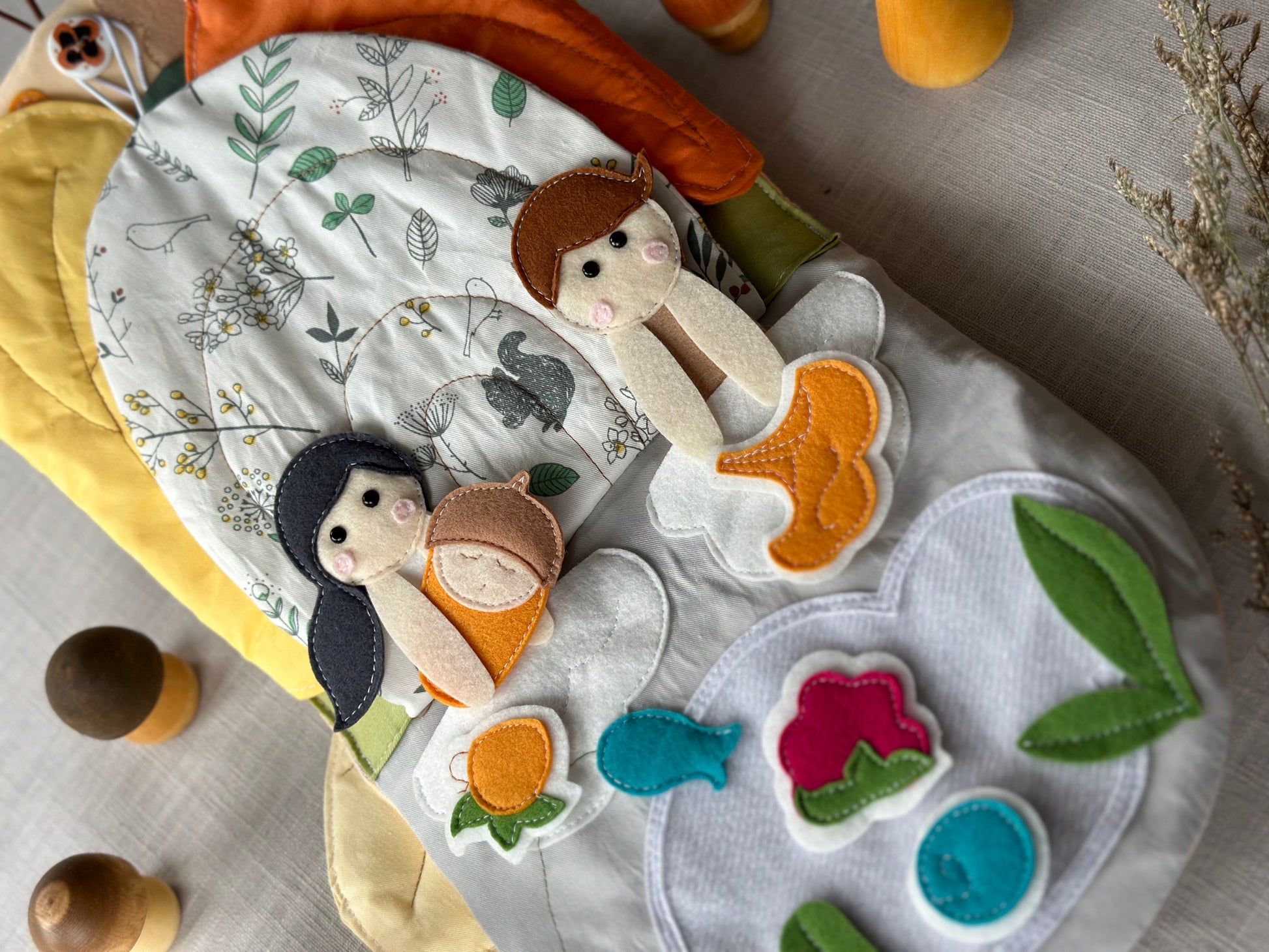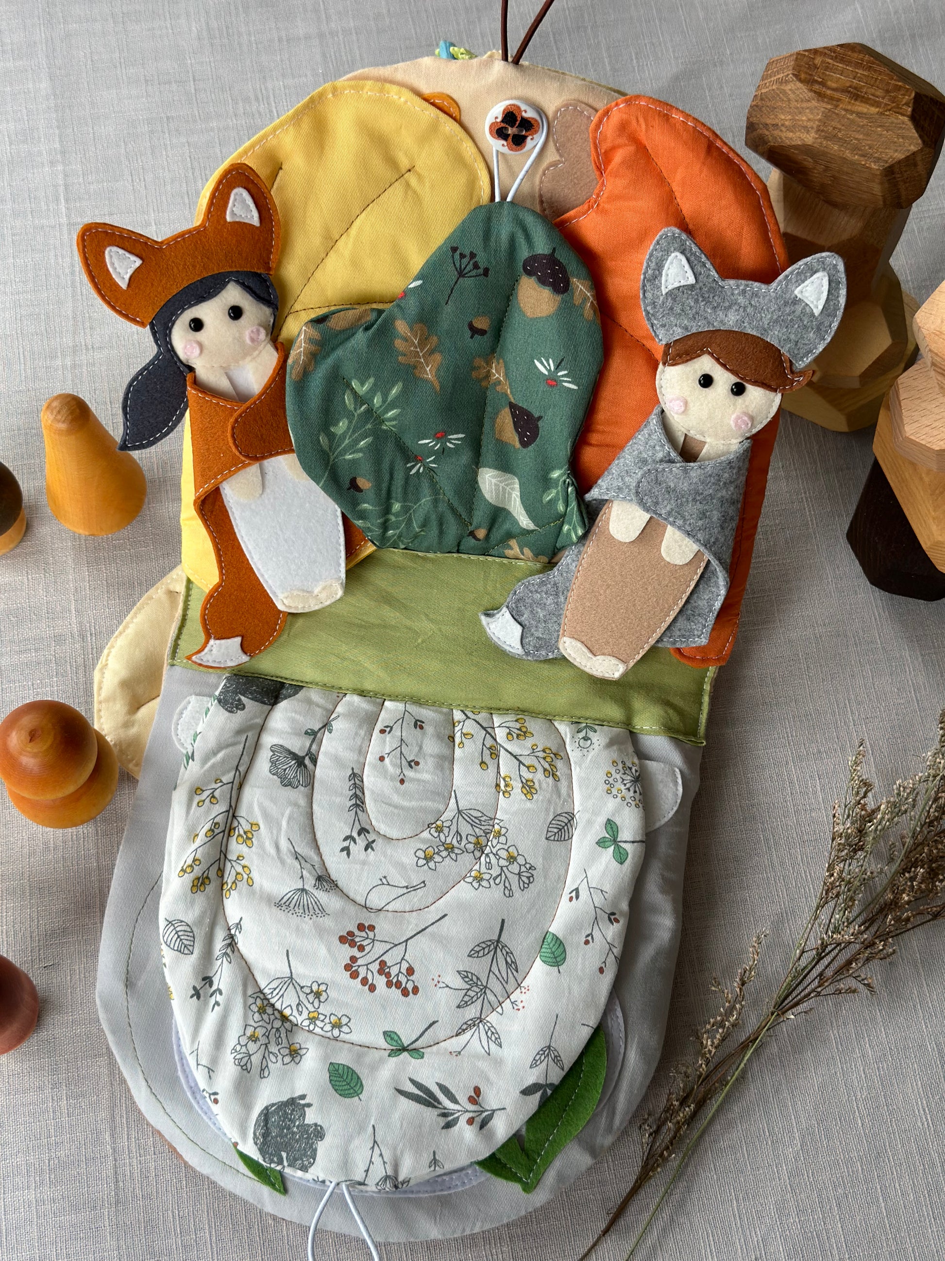 Das Buch erscheint als eine coole, stylische Handtasche. Weich und biegsam ist das Häuschen aus reiner Baumwolle und Filz, liebevoll per Hand gefertigt. Die Seiten knistern und sorgen für ein taktiles Spielerlebnis.