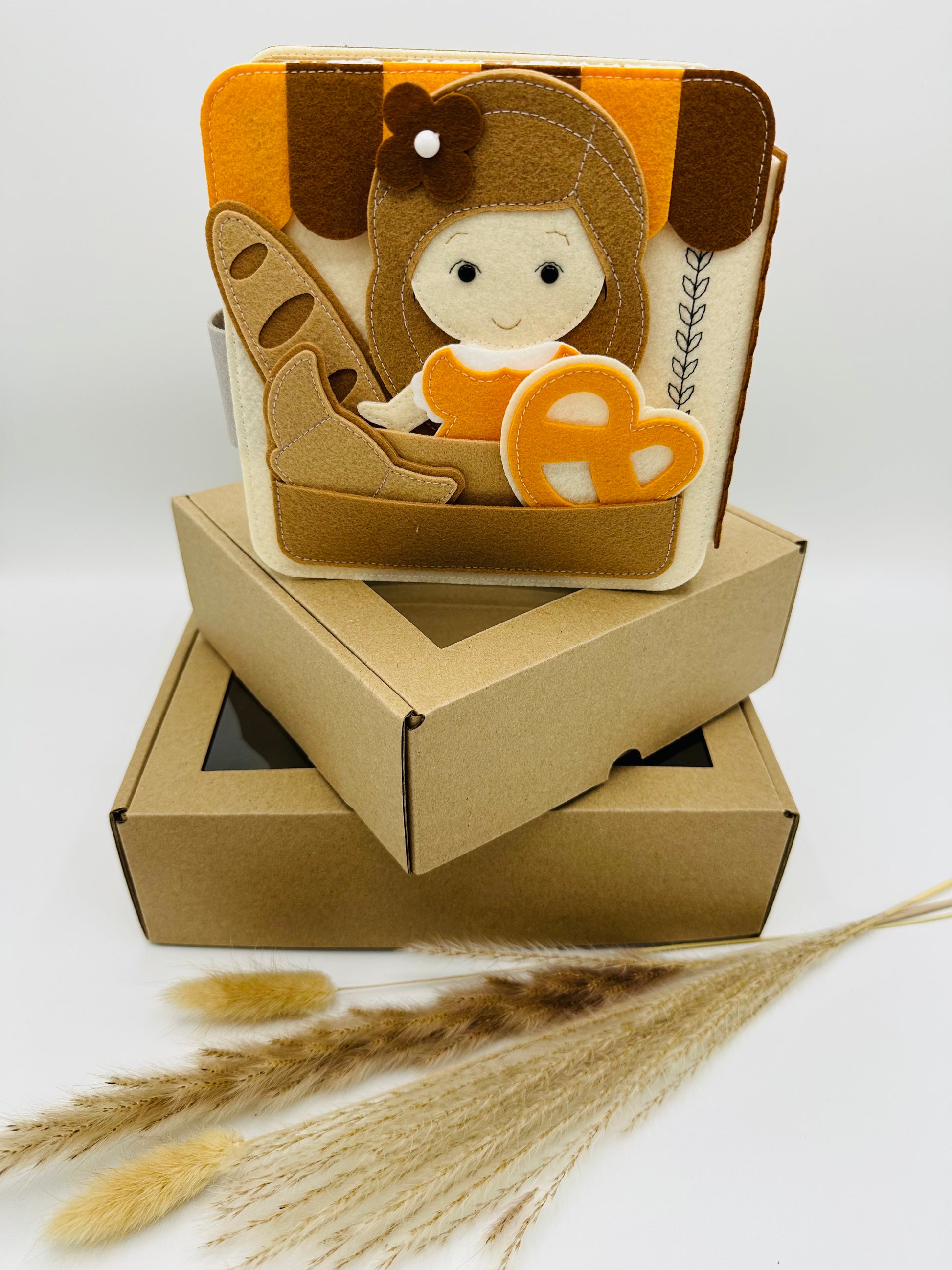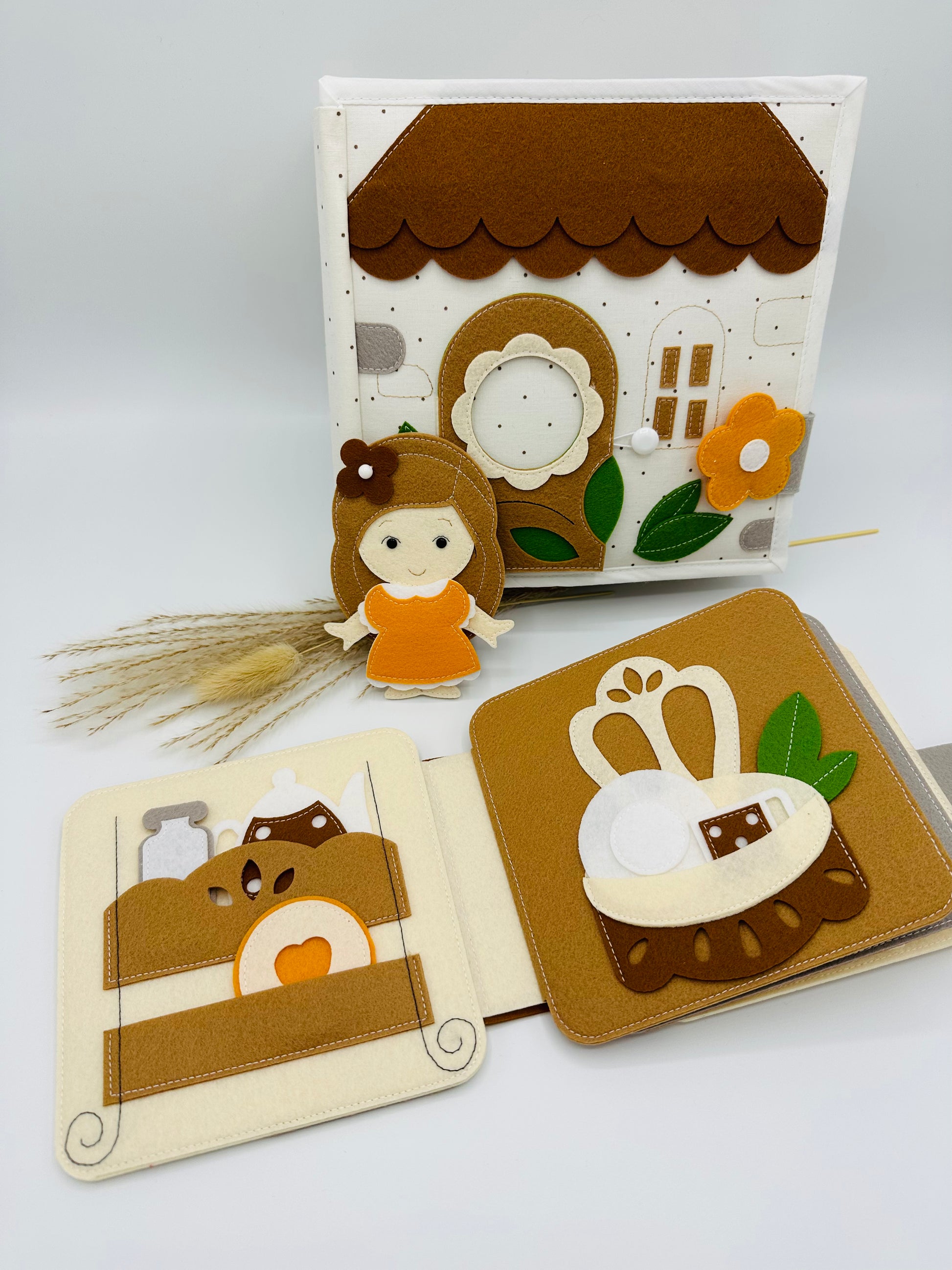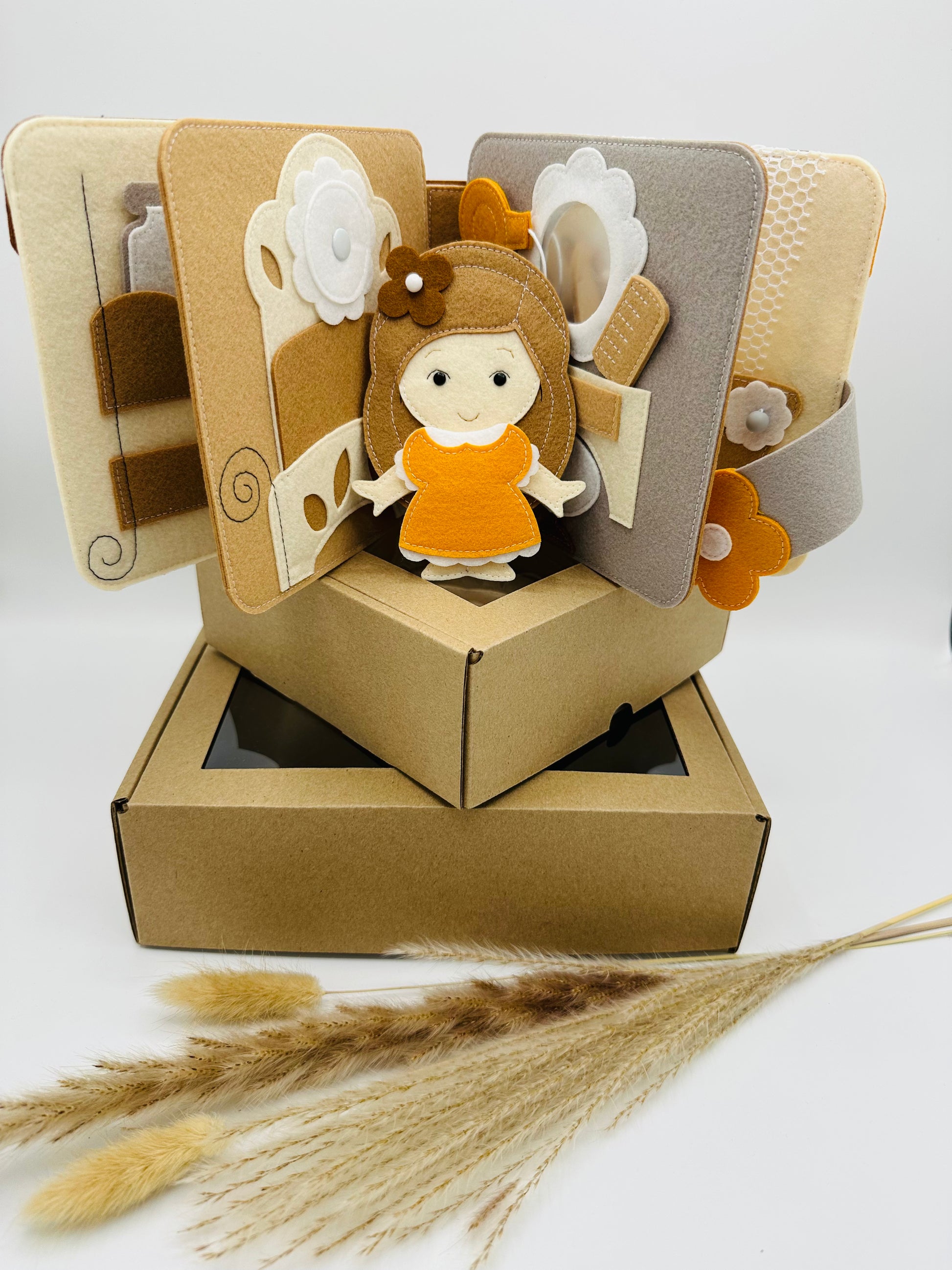 15x15 cm groß, 8 Spielseiten, liebevoll per Hand gefertigt.