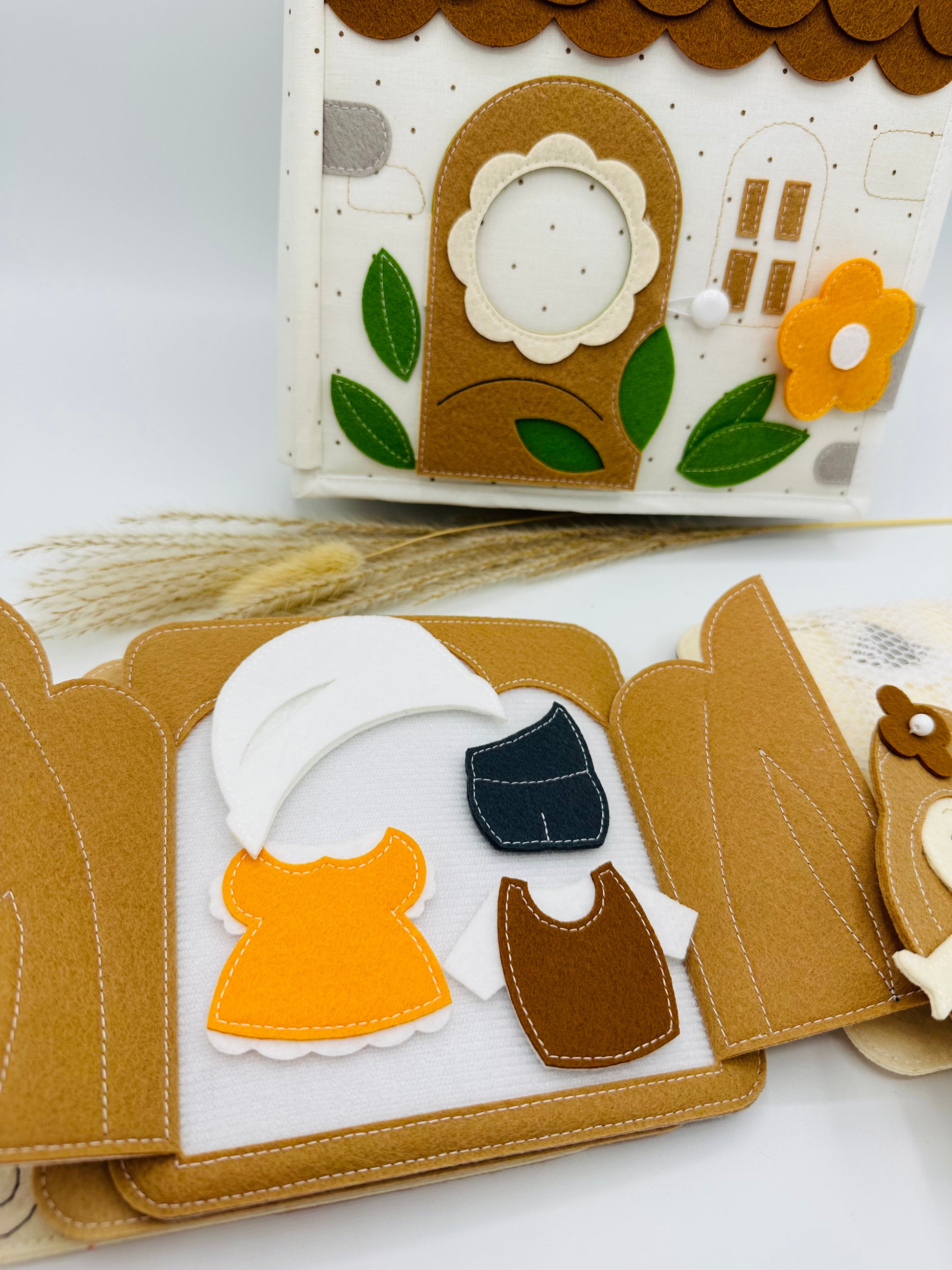 Das schöne, stylische Puppenhaus aus Filz erscheint in stilvollen, aufeinander abgestimmten Pastelltönen.