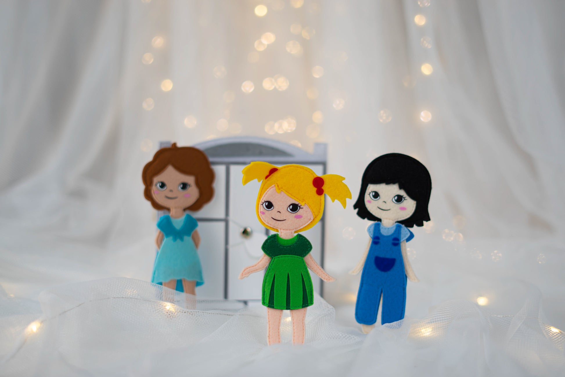 Die Püppchen kann man mit anderen Büchern kombinieren. Besonders gut geeignet sind sie als Ergänzung für unsere Puppenhäuser.