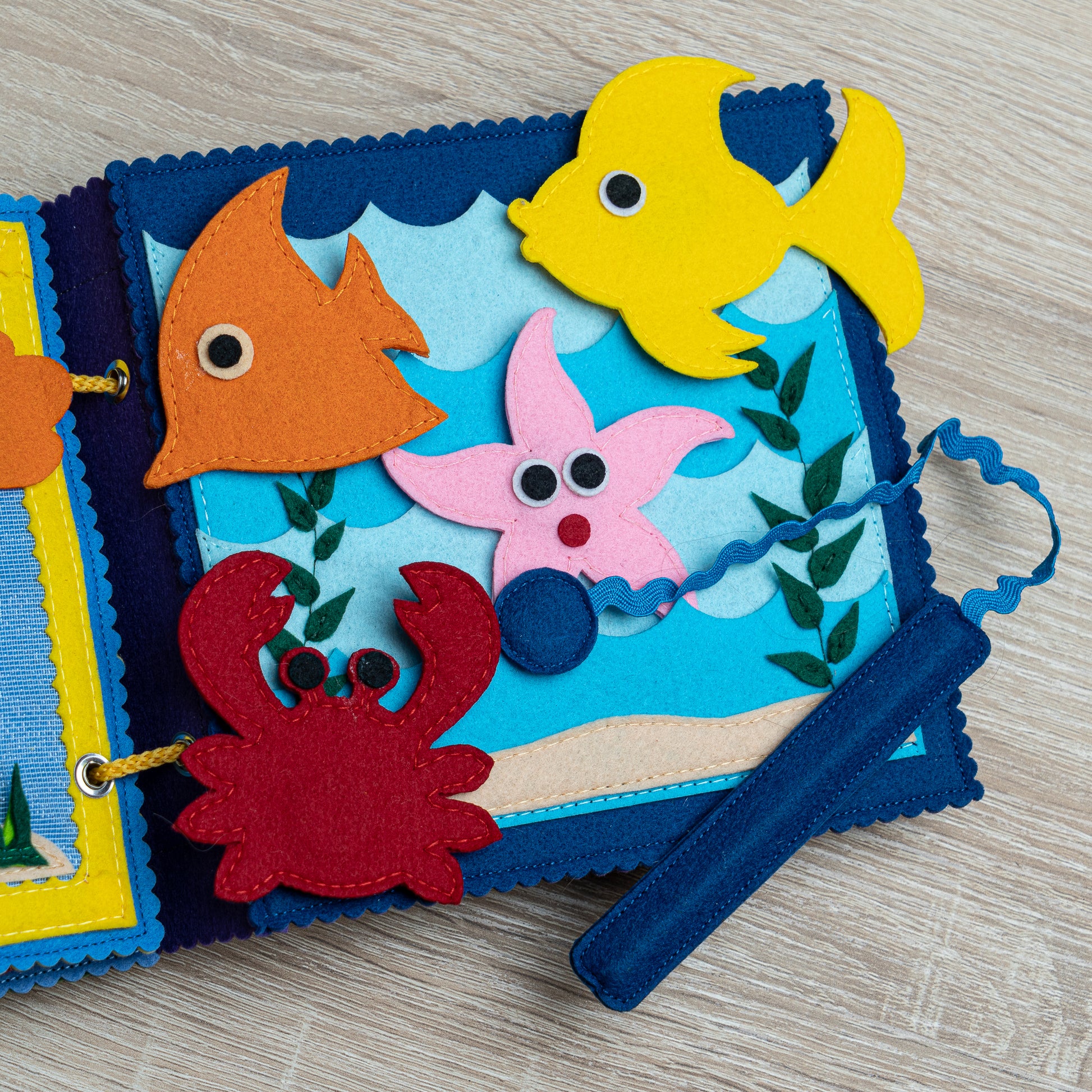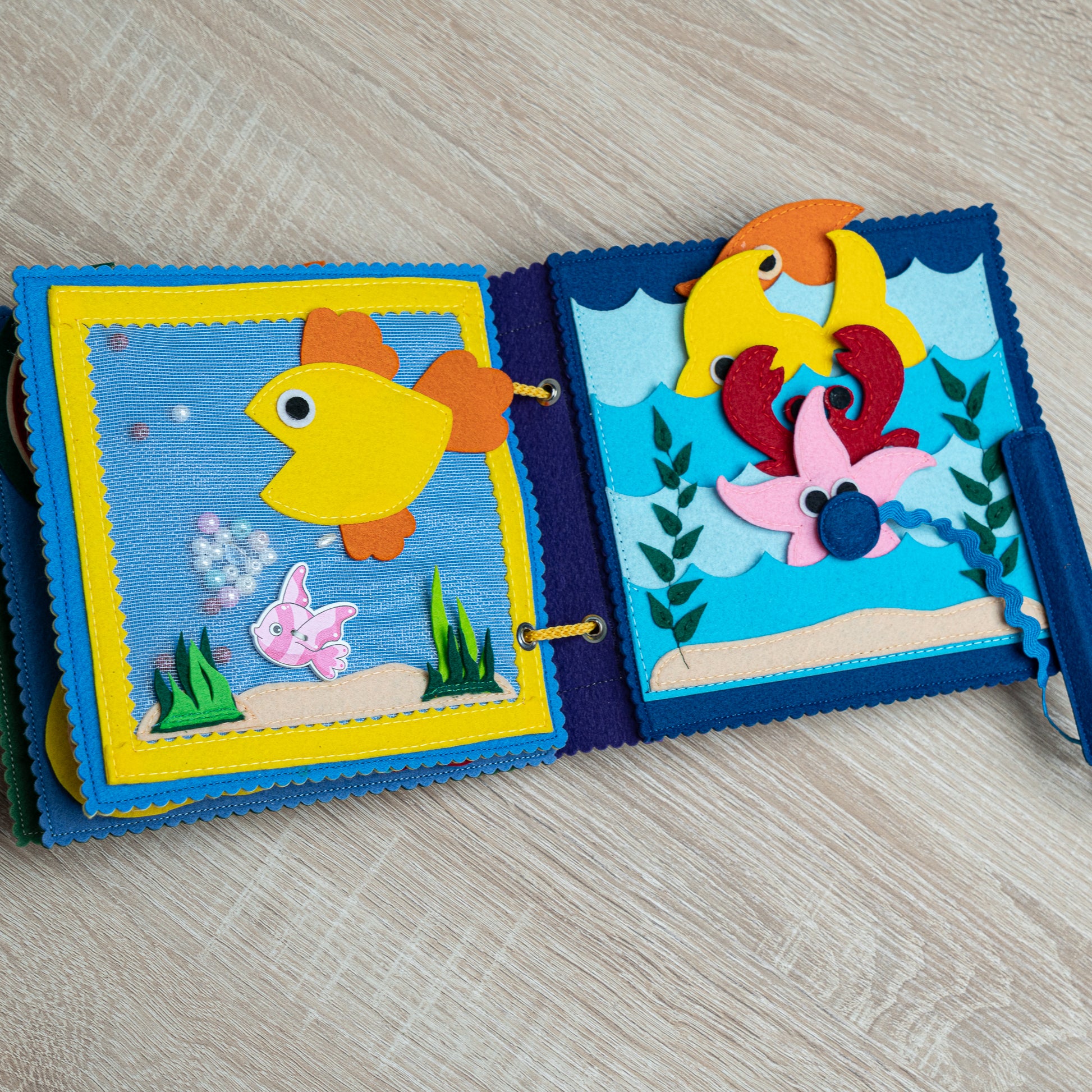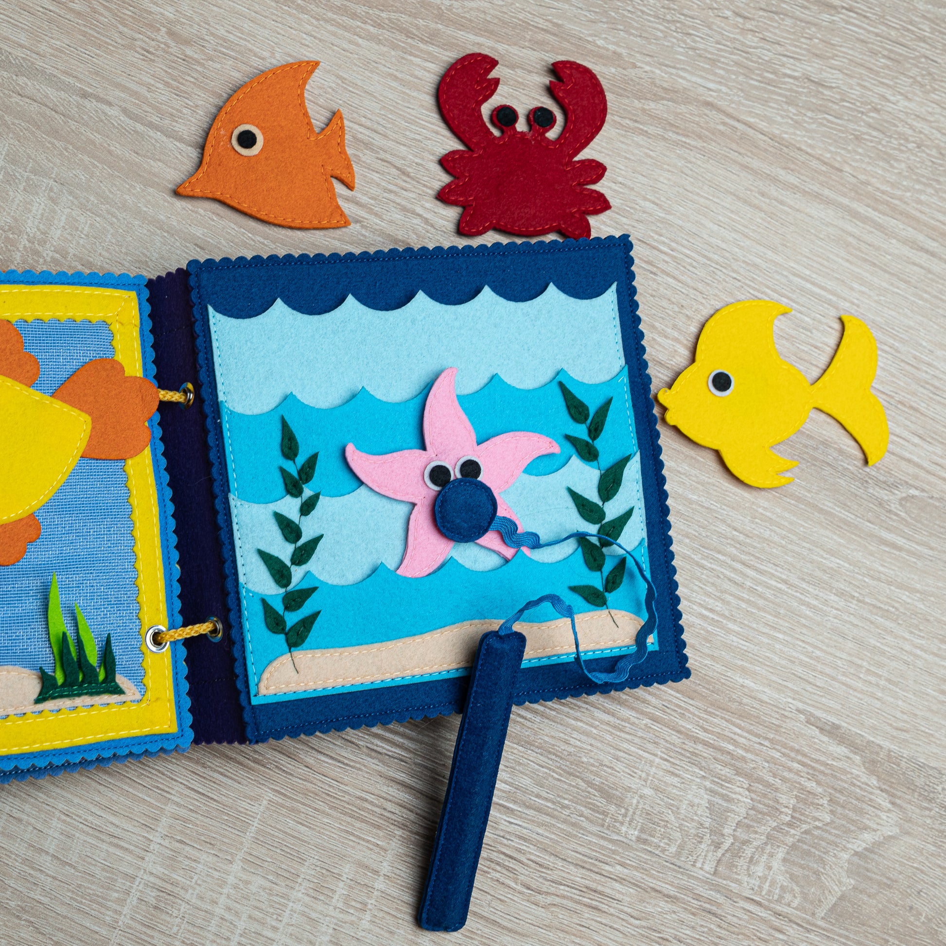 Schönes farbenfrohes Kinderbuch aus Filz für Kleinkinder mit einem Magnetspiel „Angeln“