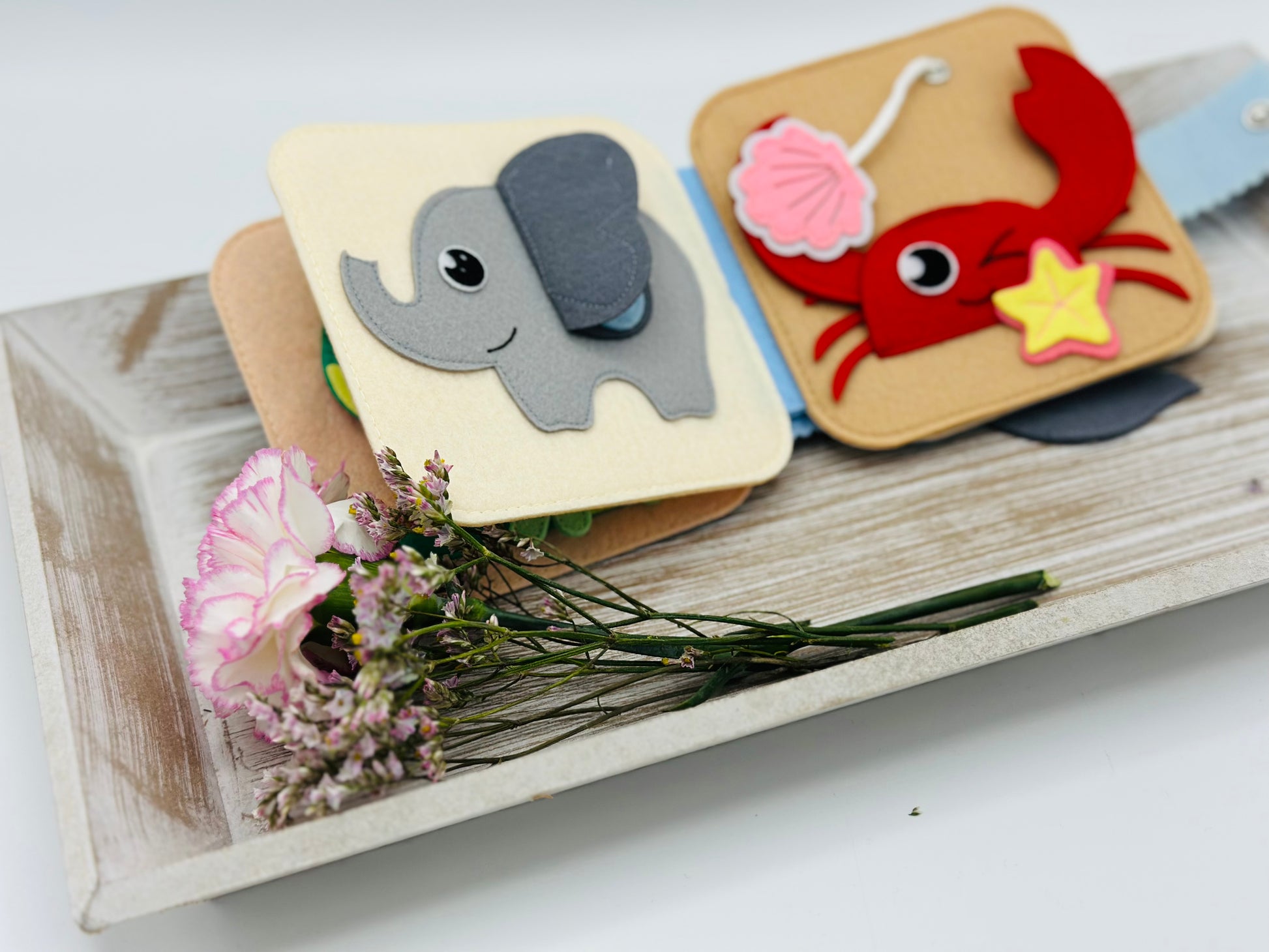 Kinder erforschen und entdecken die Welt durch ihre Sinne. Sie sehen, beobachten, hören, fühlen, tasten, riechen, schmecken. Bei diesem aktiven Prozess des Wahrnehmens begreifen Kinder die Welt. Unsere Quiet Book sind wertvolle Lerninstrumente, die die Kleinen bei diesem Prozess unterstützen.